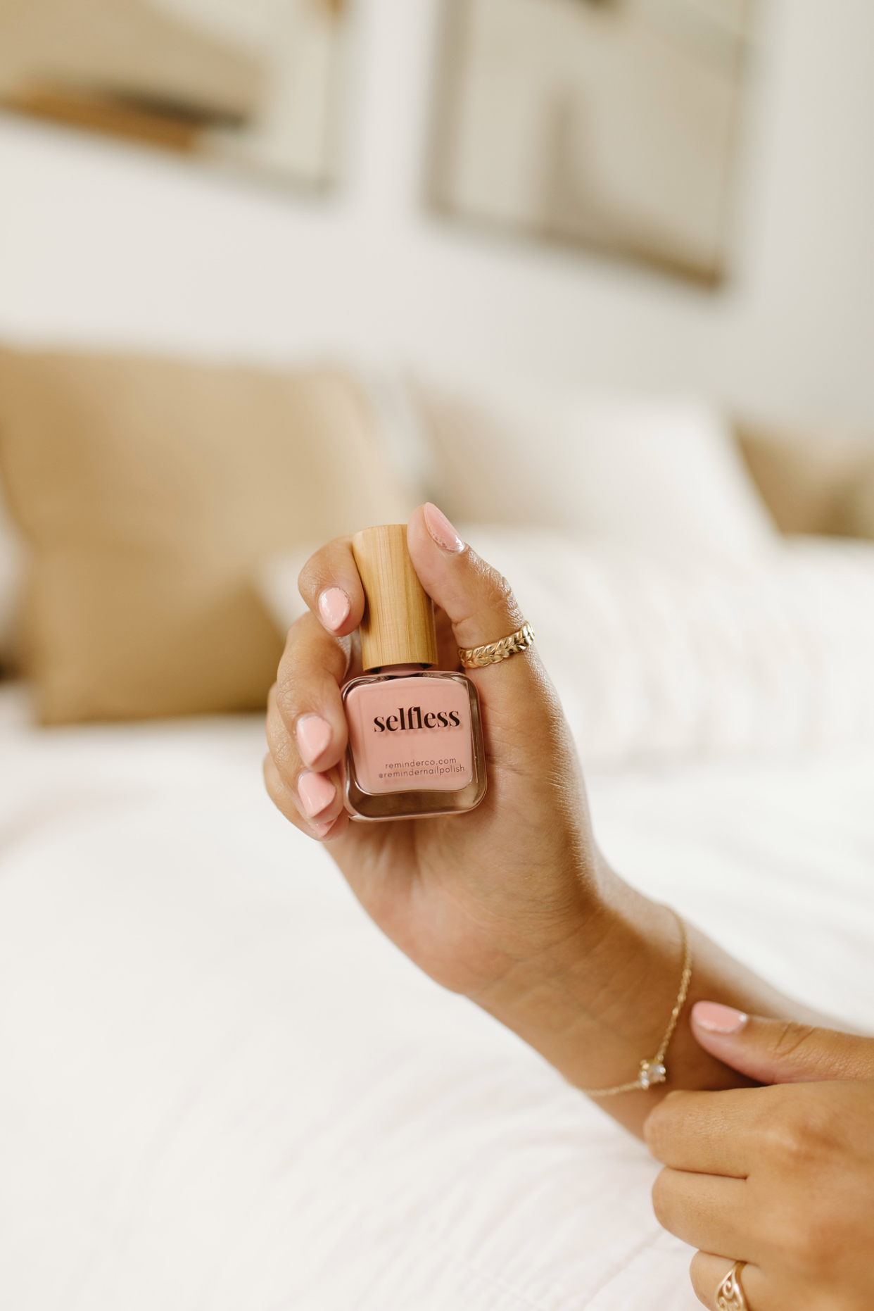 It was more pink than peach on my skin tone (I’m fairly pale), but still a great polish and color. It also was different shades in different lighting!